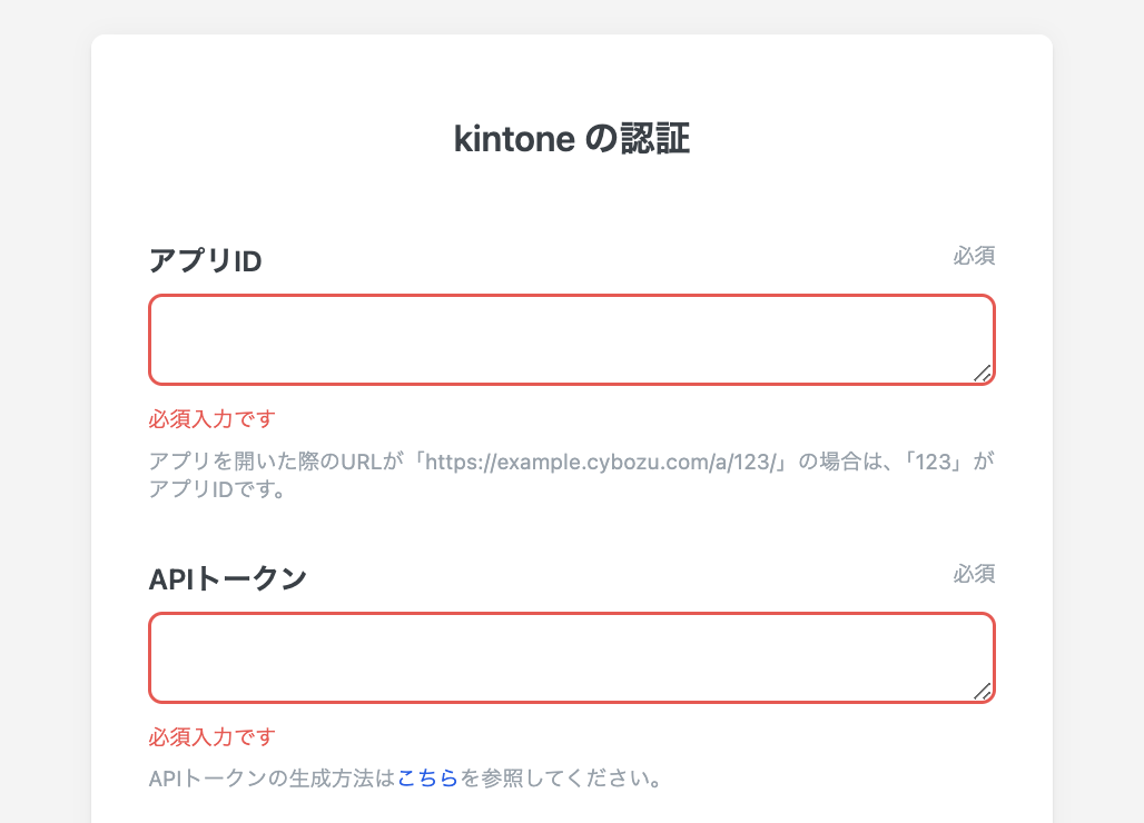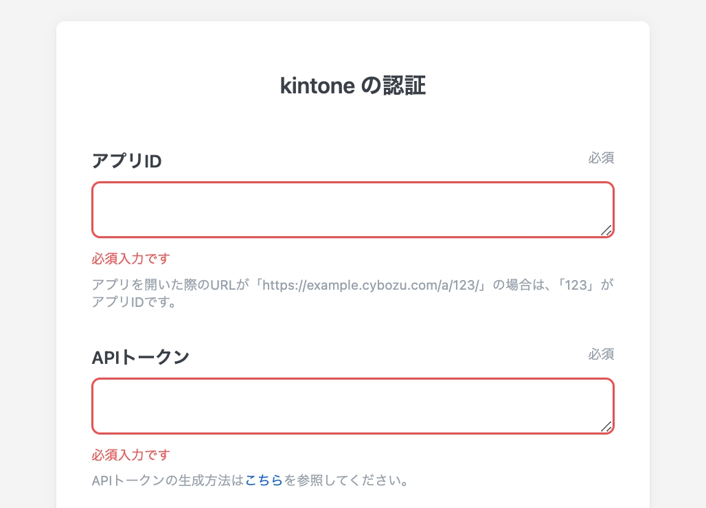 サブドメイン:kintoneアカウントに割り振られたサブドメインを入力します