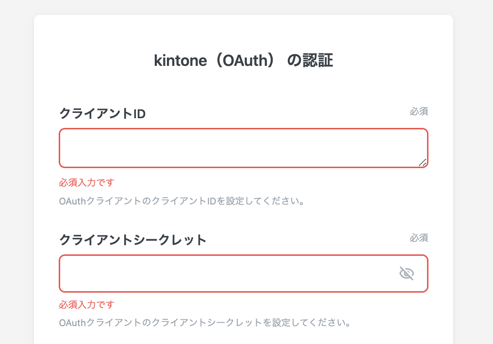 クライアントシークレット:kintoneで作成したOAuthクライアントのシークレットを入力します