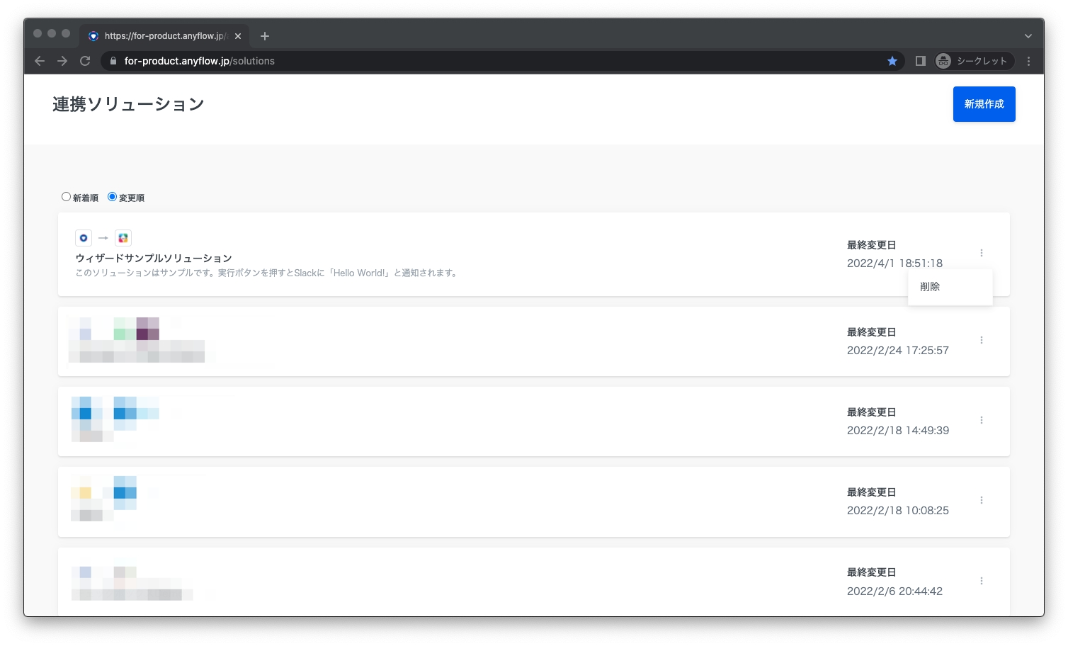 削除したい場合はAnyflow 担当者にご連絡ください。