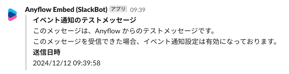 以下の様なテストメッセージが送信され、連携に成功していることを確認できます。