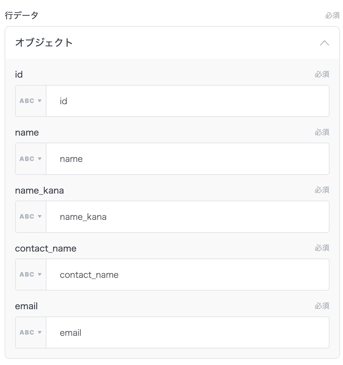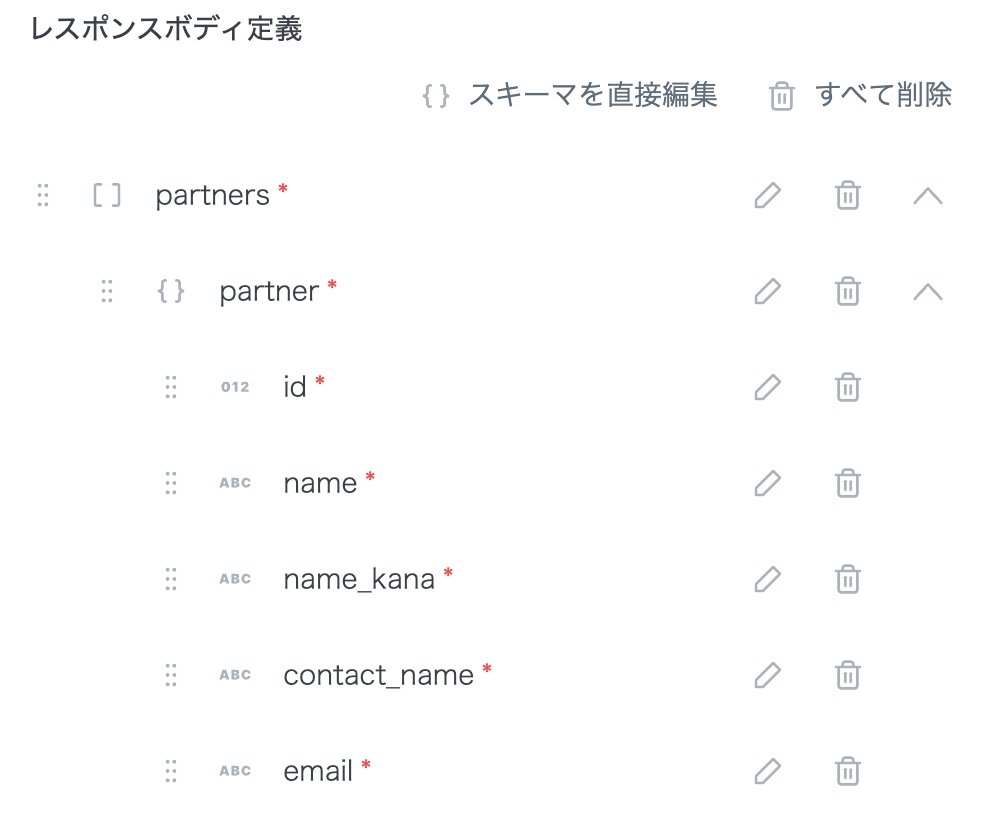 また、「レスポンスボディ定義」には以下の設定を行います。