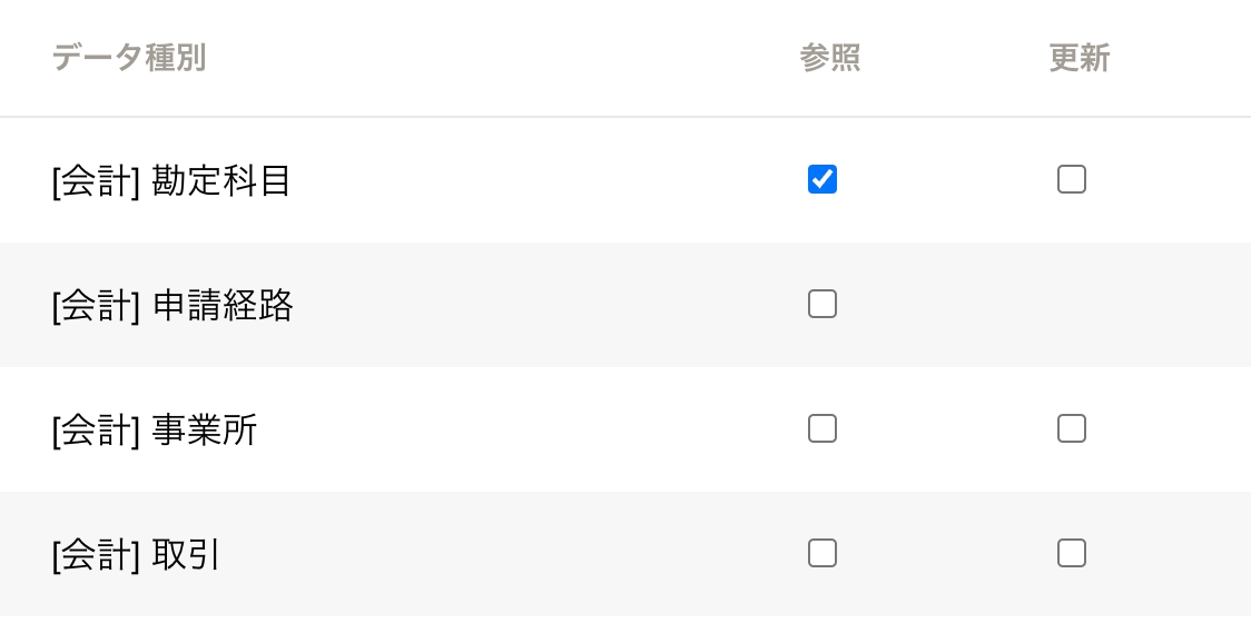 今回は [会計] 勘定科目 の参照 のみを許可します。