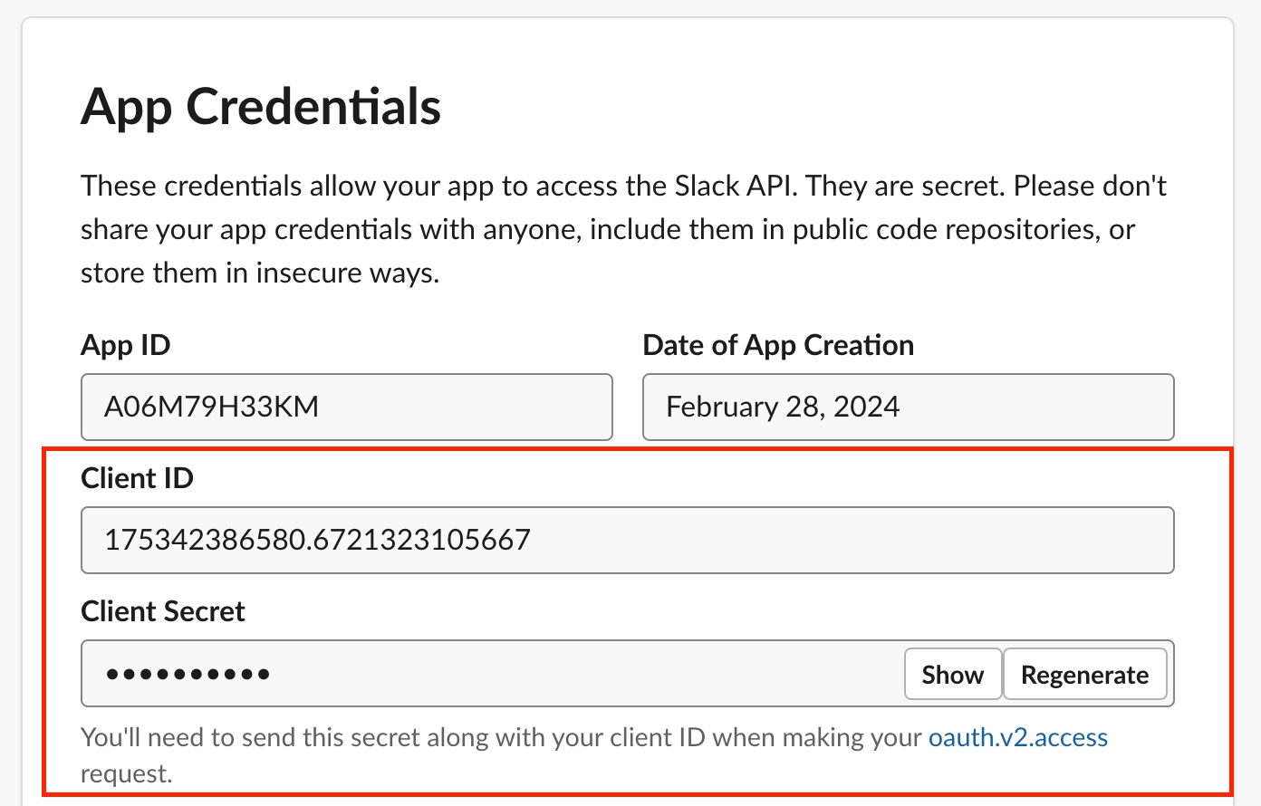 App Credentials の欄にある Client ID と Client Secret の値をAnyflow CSチームにご共有ください。
