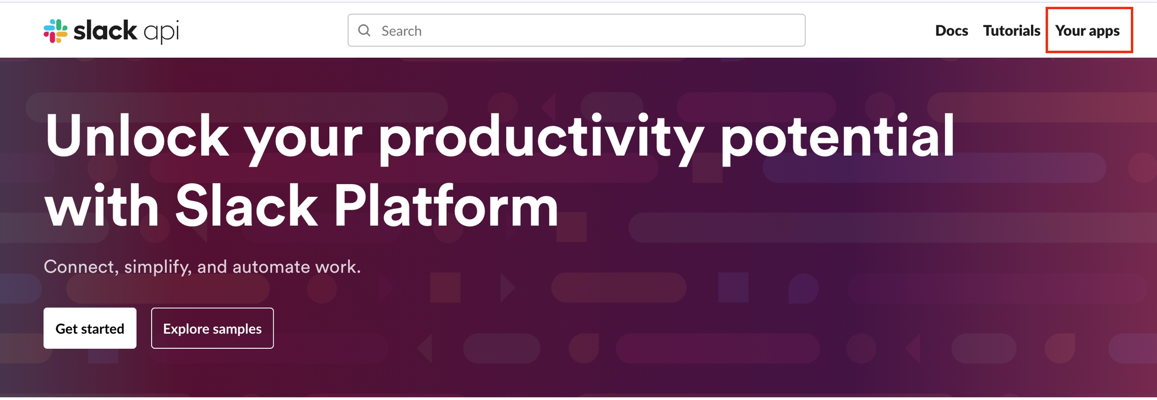 Slack APIのページから、Your Appsに 進みます。