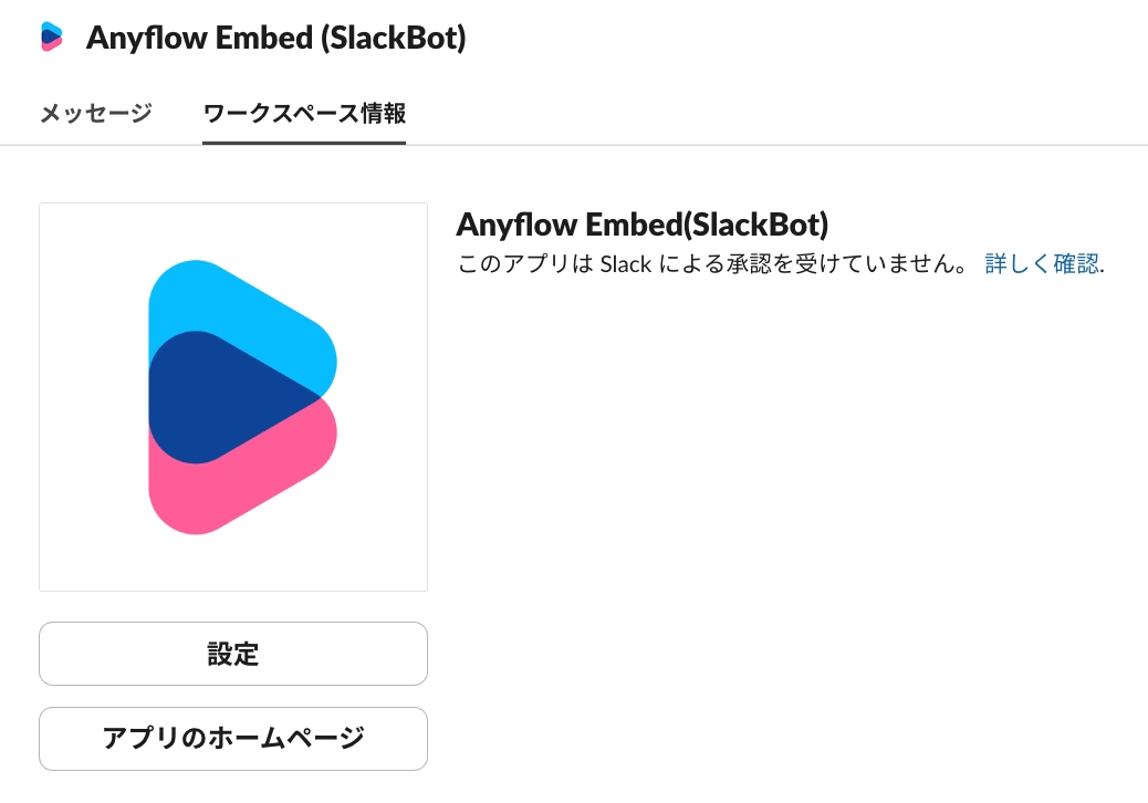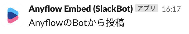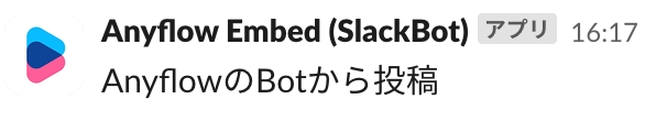 Anyflow側で設定を行うと独自のSlackBotからメッセージ投稿が行えるようになります