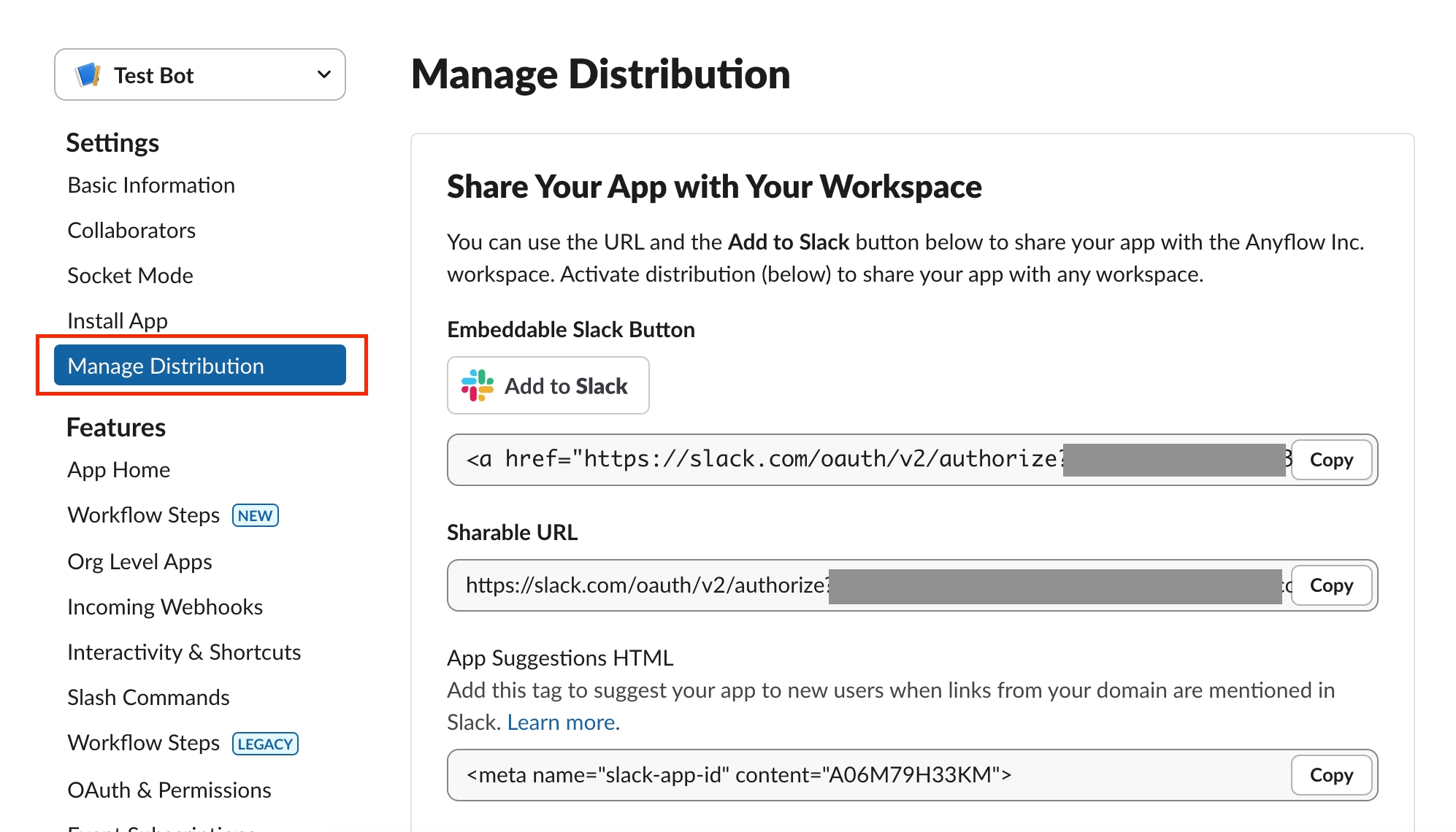 SlackBotの Client ID と Client Secret をAnyflow CSチームに共有します