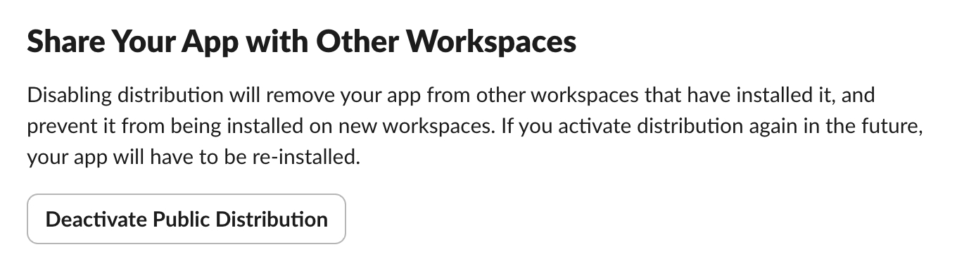 「Active Public Distribution」のボタンを押すと、このアプリは他のワークスペースからでもインストールできるようになります。