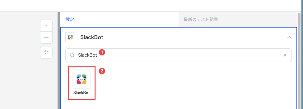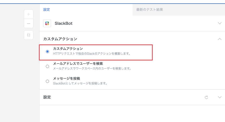 アクションを追加し、アプリケーションとして「Slack Bot」を選択します。