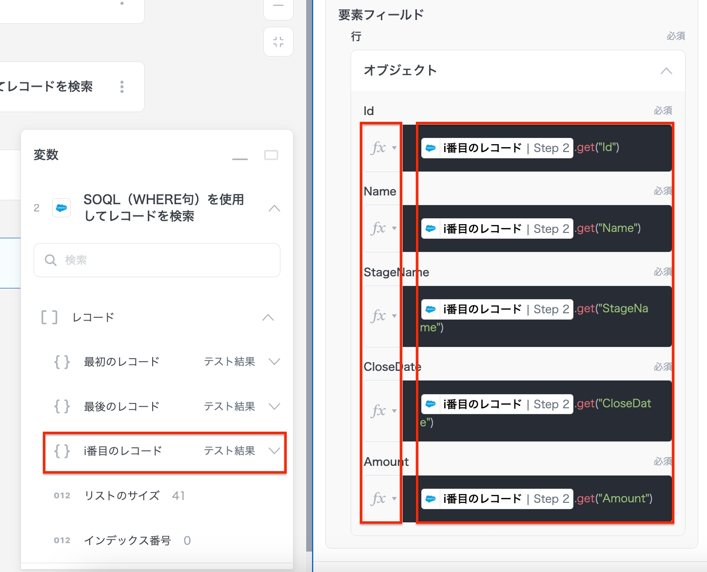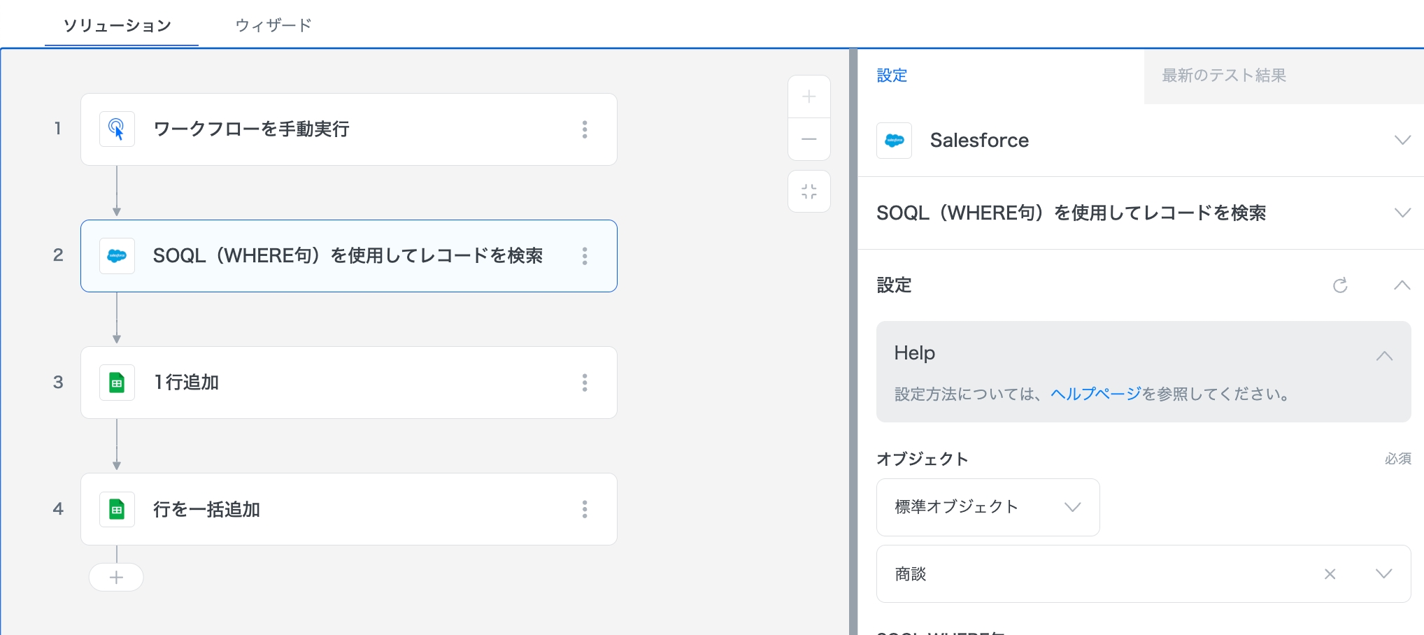また、本レシピではSalesforceアクションの「SOQL(WHERE句)を使用してレコードを検索」を利用します。