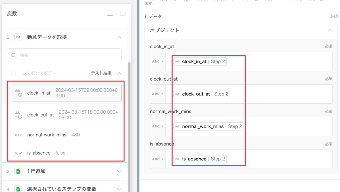 4. 「従業員ID」と「日付」のエンドユーザー変数を設定する