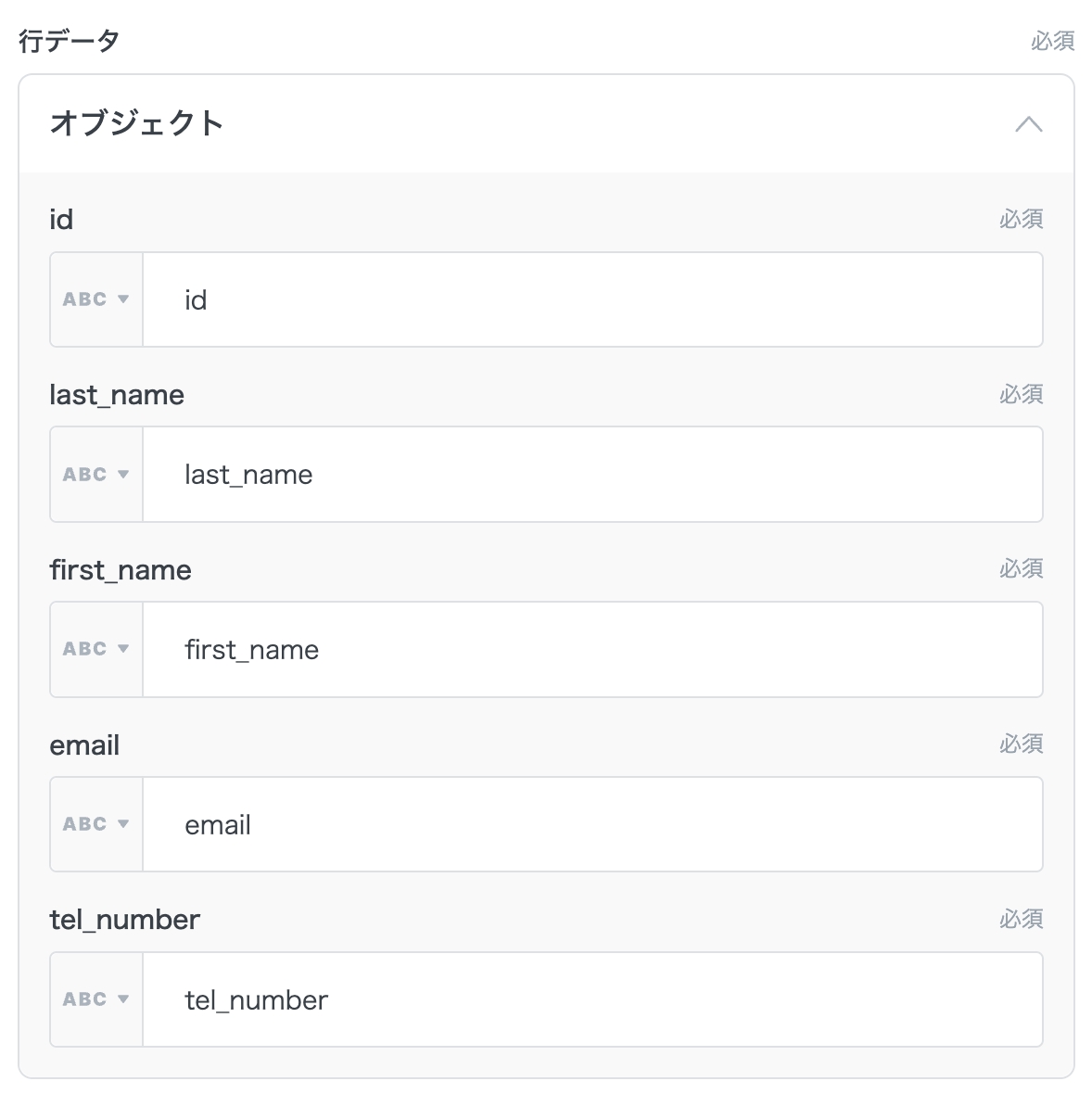 ソリューションエディタに戻り、freee人事労務コネクタを以下の通りに設定します。