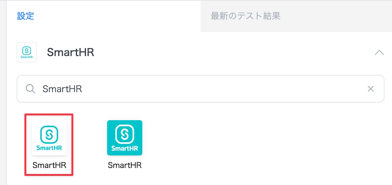SmartHR コネクタを追加します。本レシピでは背景が白色の SmartHR コネクタを使用します。なお、2つのコネクタの違いについての詳細は 2種類のSmartHRコネクタ2種類について を記載しています。