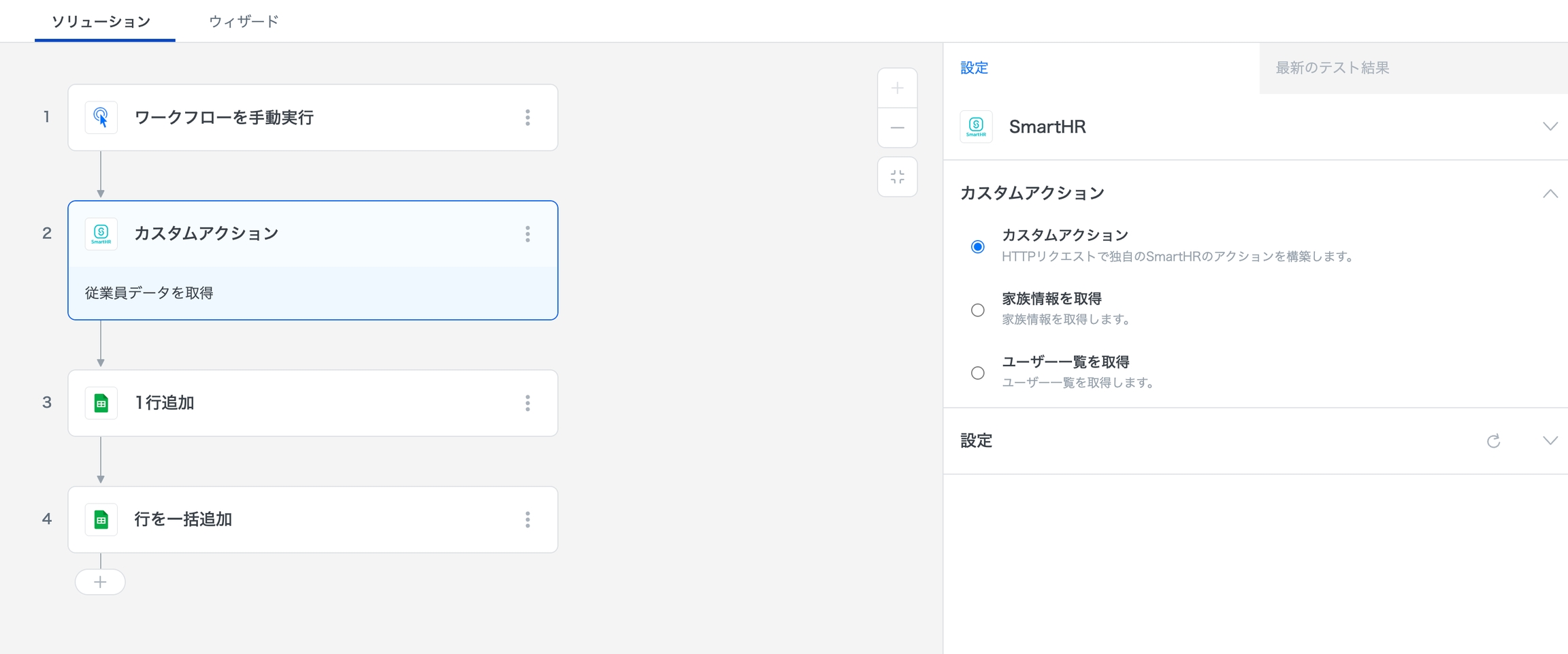 SmartHR の従業員データをスプレッドシートに一括追加するというシンプルなソリューションを作成し、従業員fに含まれるデータを把握します。