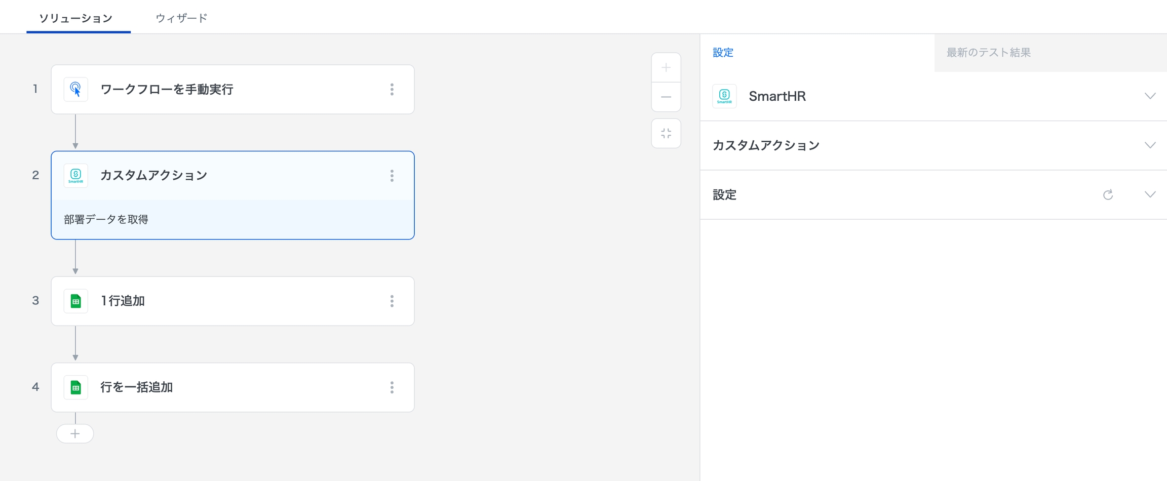 SmartHR の部署データをスプレッドシートに一括追加するというシンプルなソリューションを作成し、部署に含まれるデータを把握します。
