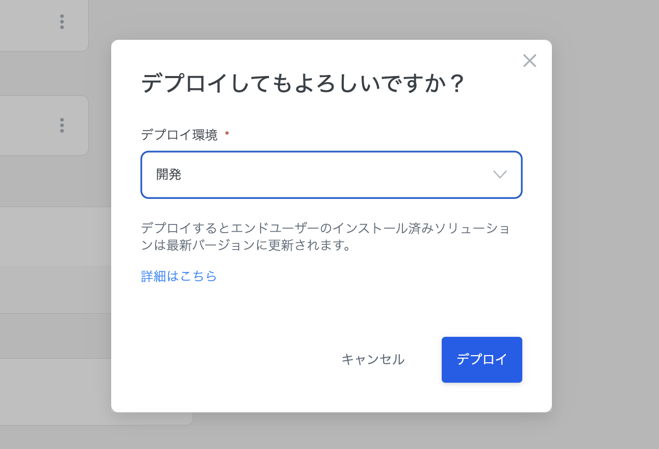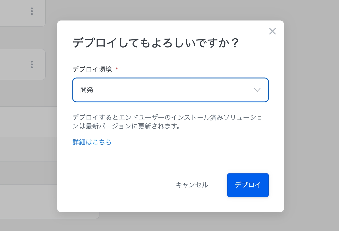 ソリューションをデプロイする際、自社プロダクトの環境が本番・ステージング・開発など複数ある場合は、 デプロイ環境の機能を使うと環境ごとに分けてソリューションをデプロイする運用ができます。