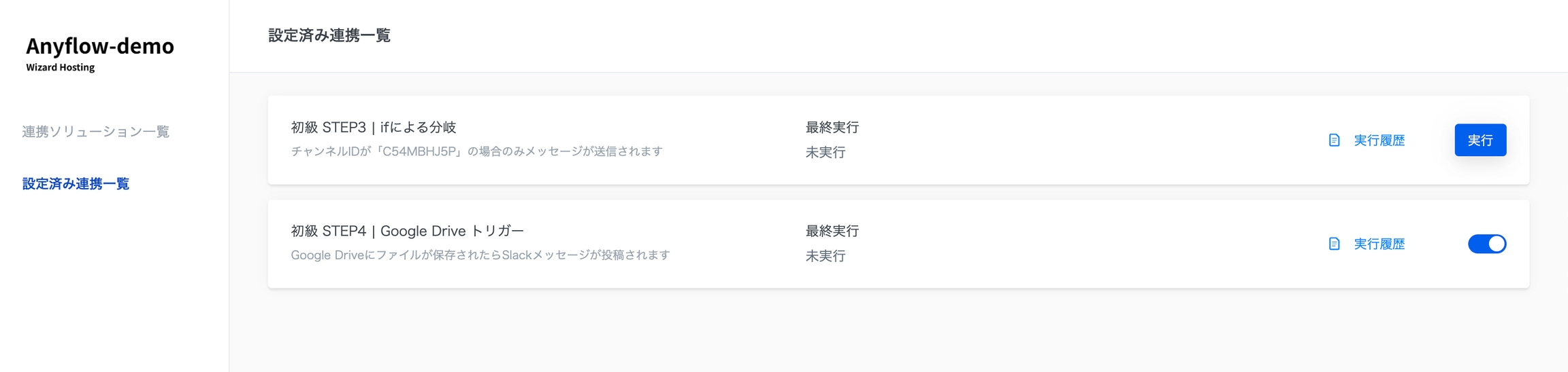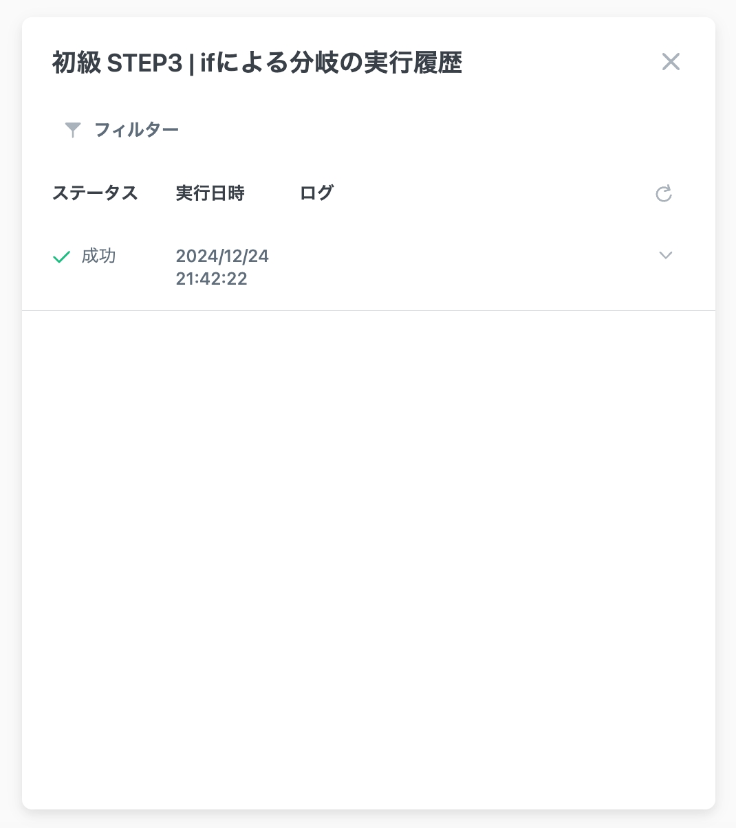 「実行履歴」ボタンを押すとそのソリューションの実行履歴を表示できる
