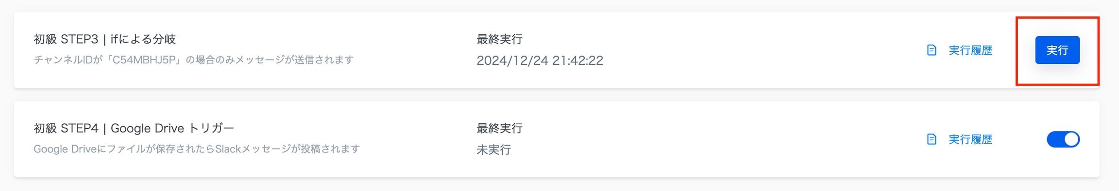 必要に応じて実行ボタンを表示してください。(ClickトリガーまたはMy Eventトリガーの場合、手動実行が可能です)
