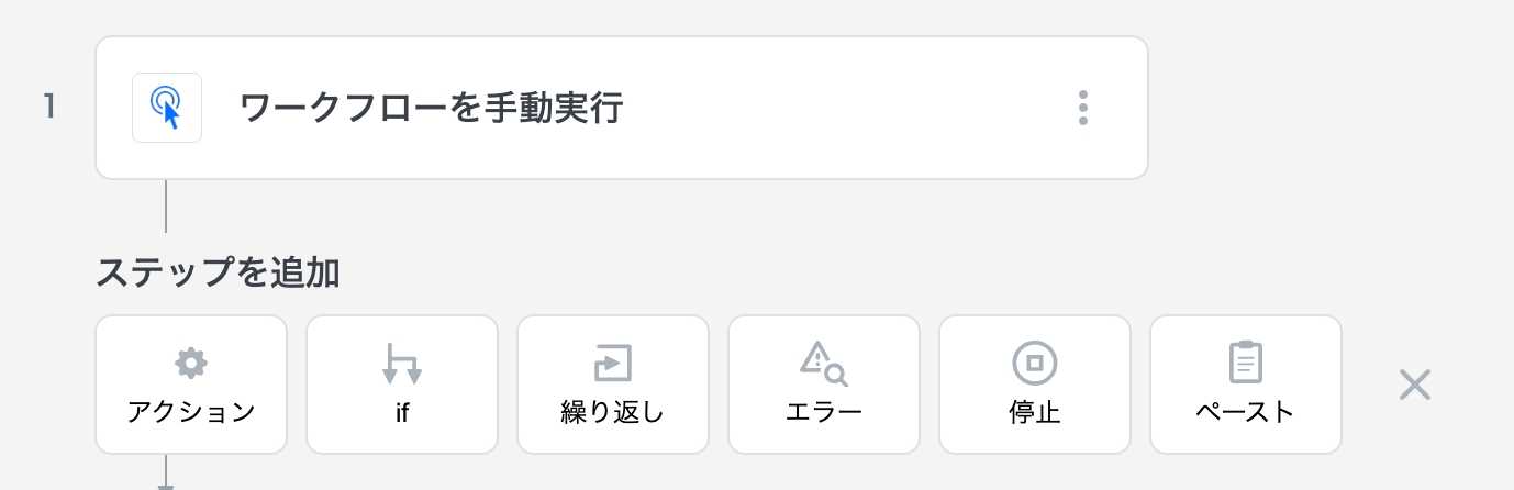 ステップは、アクション、if、繰り返しなどから構成されます。