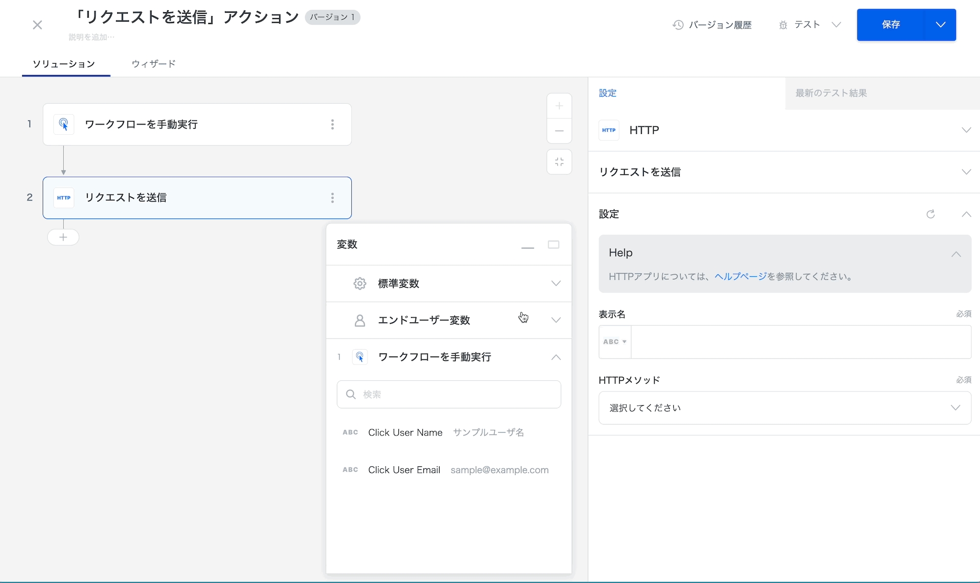 HTTP リクエストで独自のアクションを構築します。