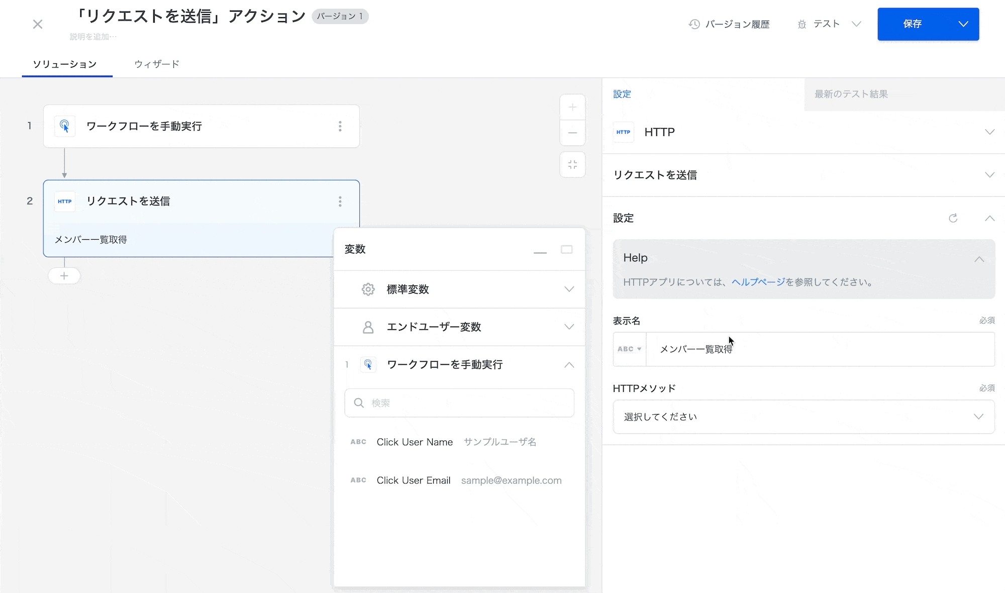 HTTP コネクタでは、現在以下のアクションを利用可能です。