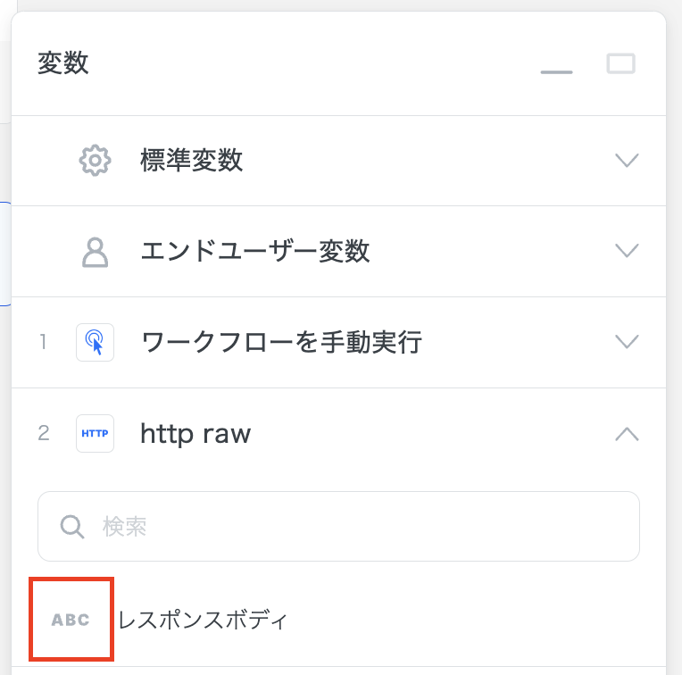 「リクエストを送信」アクションの入力フィールド