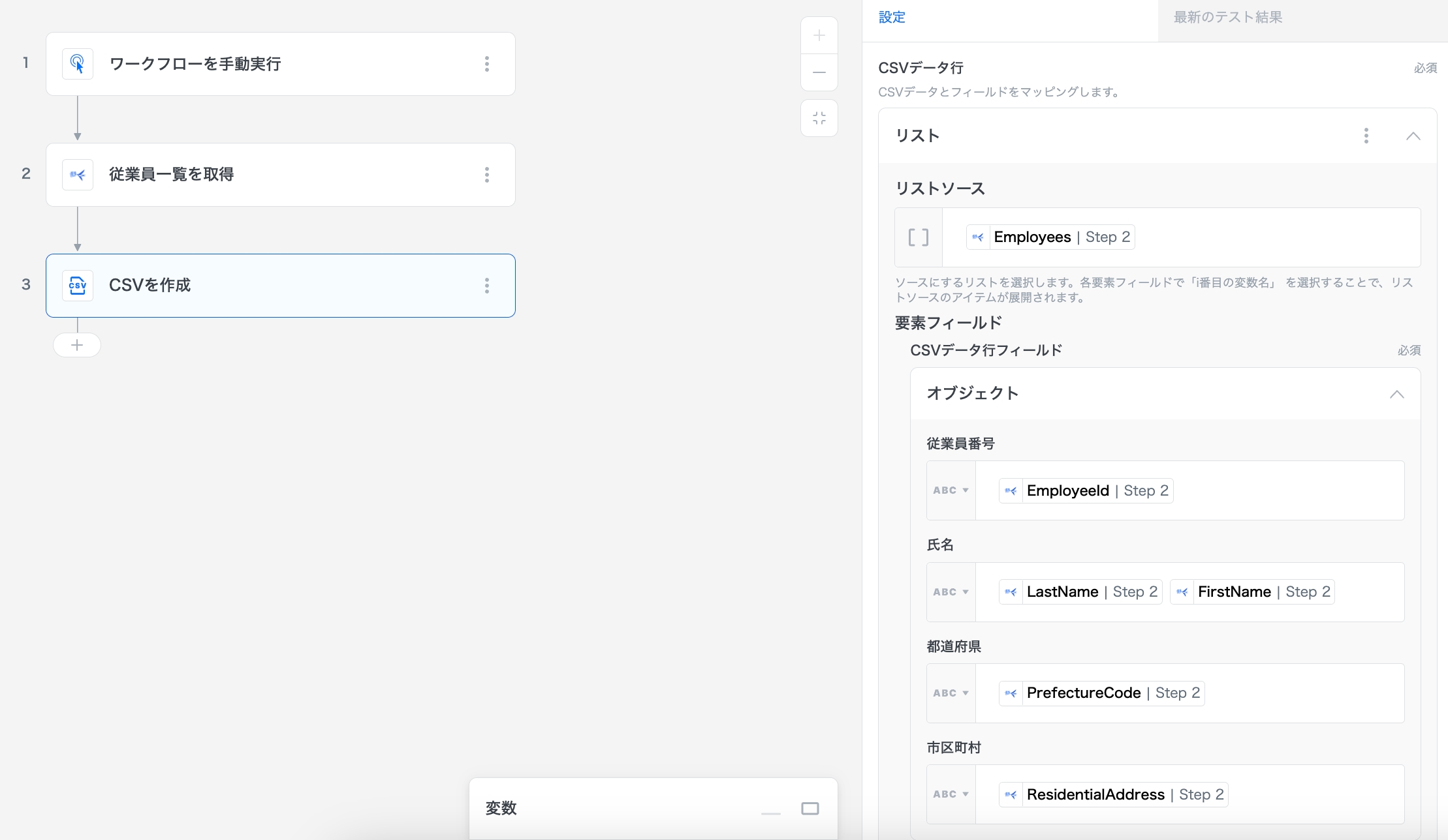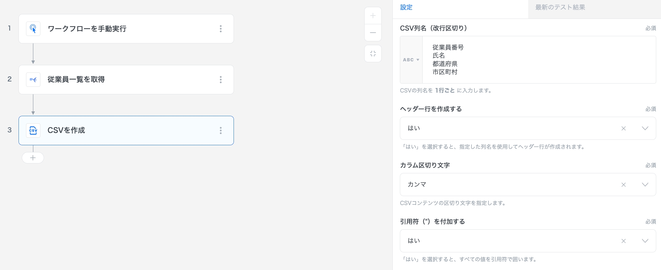 CSVアクションはAnyflowの標準アプリで、以下の処理を実行できます。