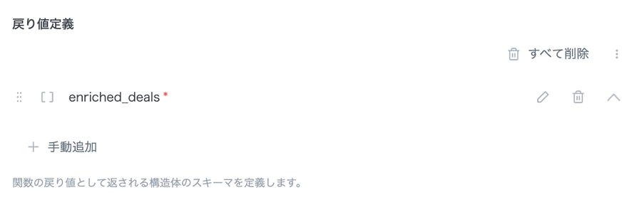 引数と戻り値のスキーマはそれぞれ事前に定義しておく必要があります。 ただしオブジェクトの中身までは定義する必要はありません。