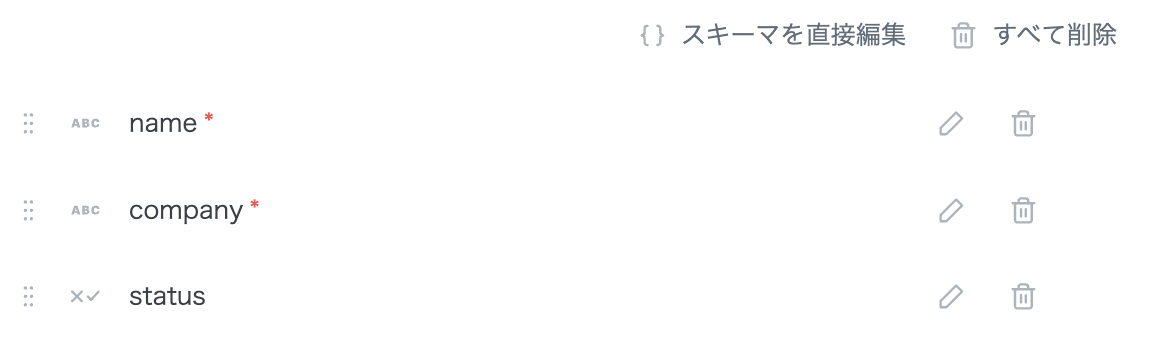 スキーマJSONのモーダルでは、以下の様に各スキーマ定義を配列にまとめて一度に設定することができます。