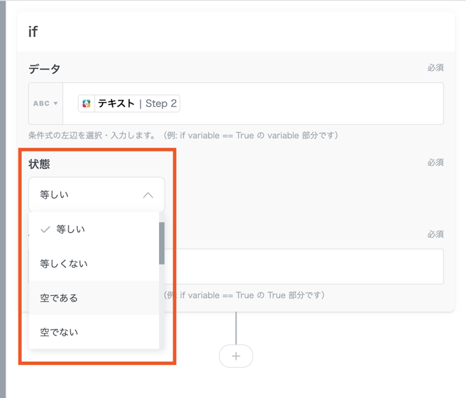 ifステップの「状態」とは、値を比較するときの条件のことを指します。