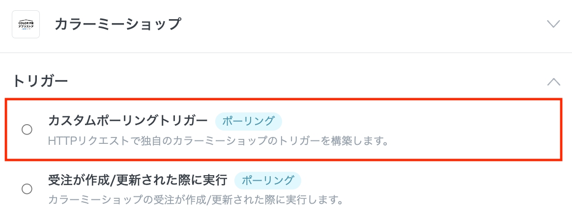 カスタムポーリングトリガーは、上記とは異なりHTTPリクエストの内容を独自に定義して実行するトリガーです。