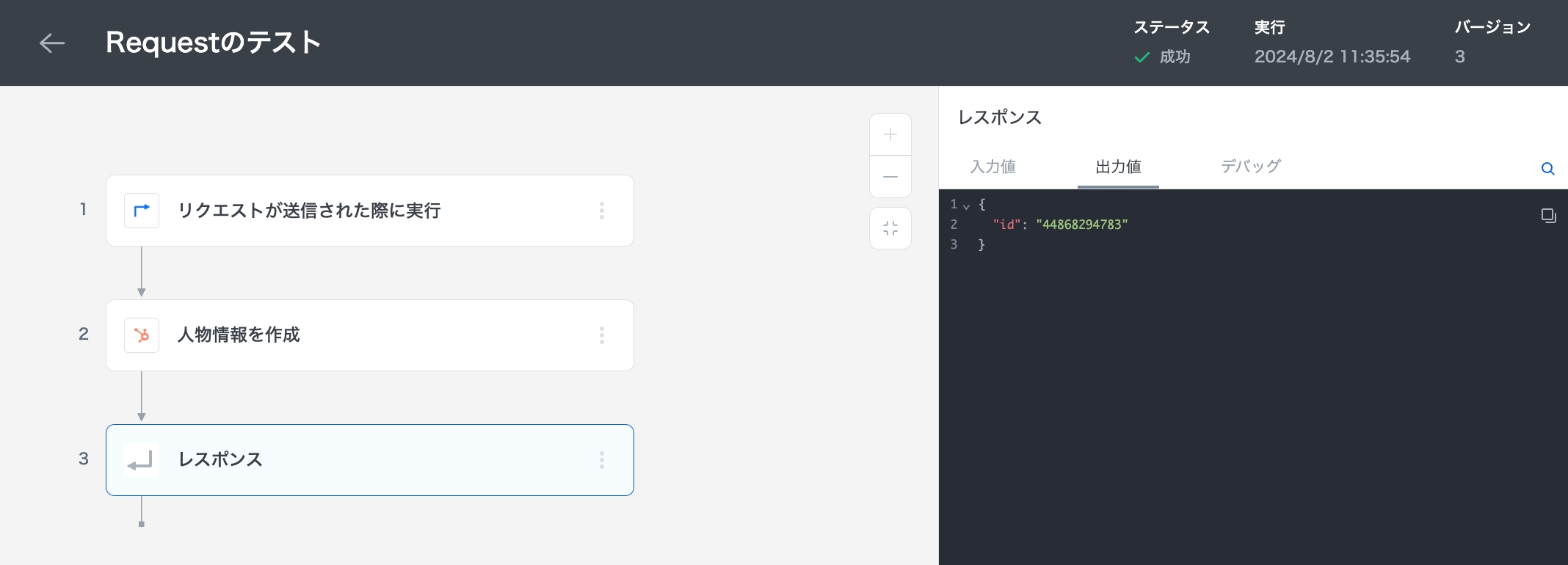 Responseステップの仕様の詳細はこちらをご確認ください。