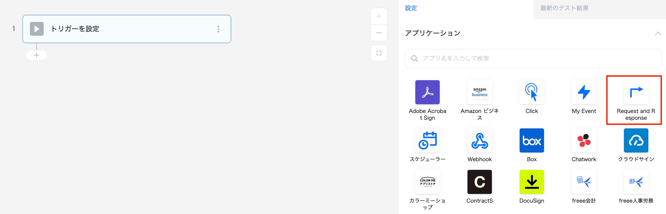 トリガーで「Request & Response」を選択します。