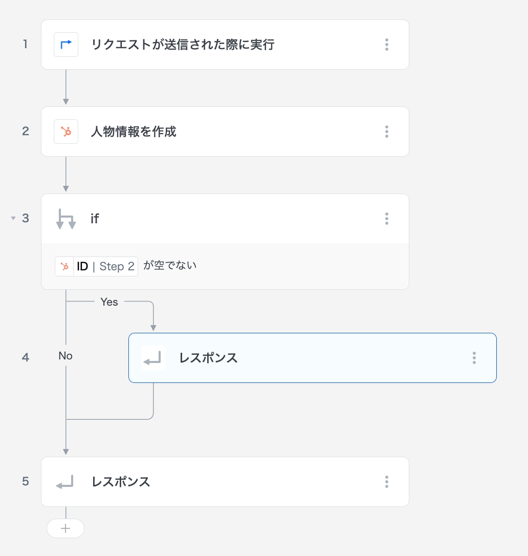 Responseステップはソリューションの中で複数配置することが可能です。 例えば以下のように、ifなどと組み合わせて状況に応じたレスポンスをすることができます。