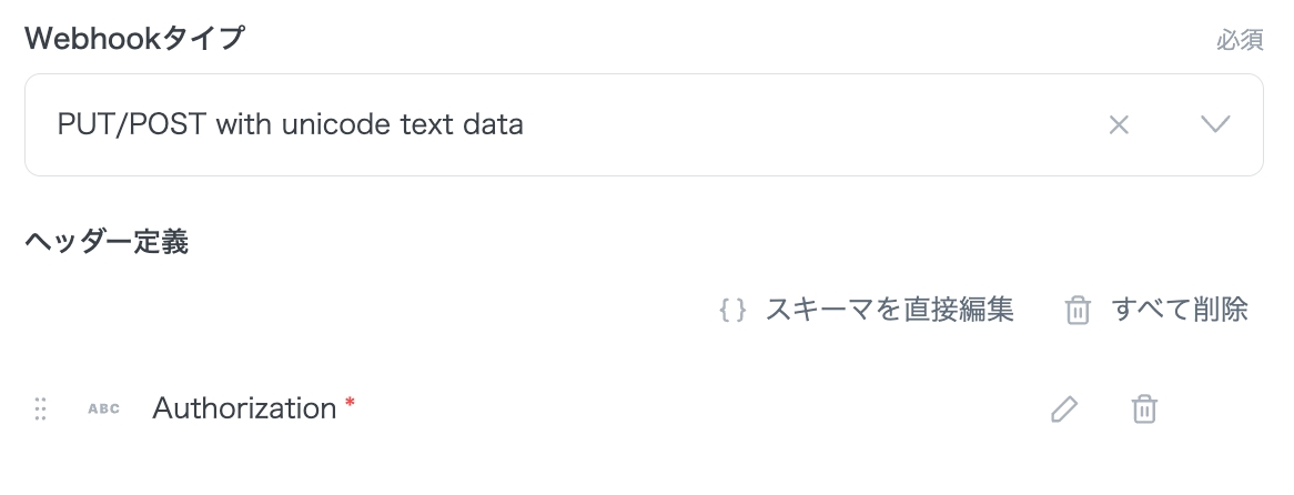 Webhookで送信されてくるHTTPのヘッダーを定義します。 ここで定義した変数が後継のアクション等で変数として利用可能です。