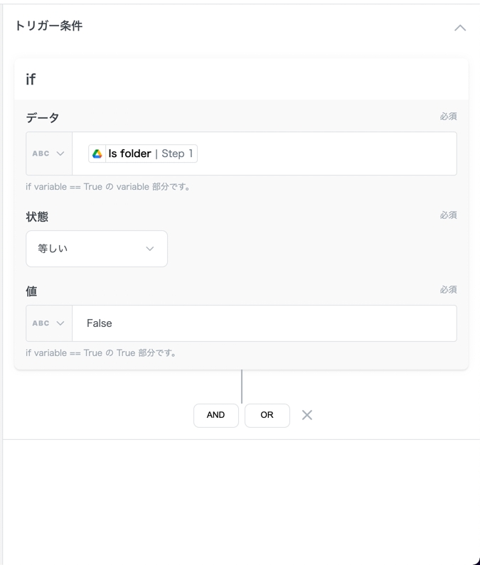 トリガーで、フォルダが作成された際にはトリガーさせない、といった追加のルールを設定することができます。
