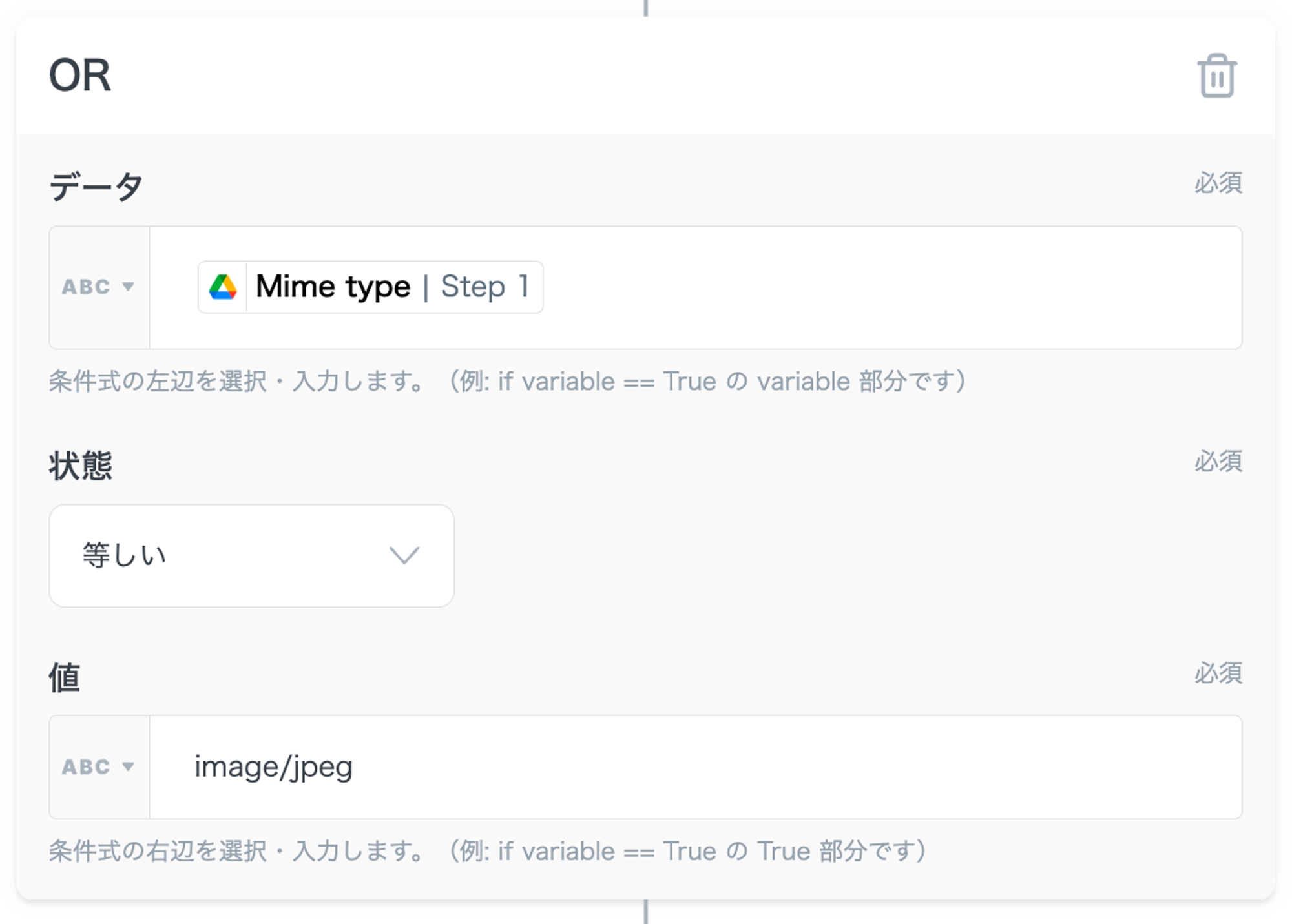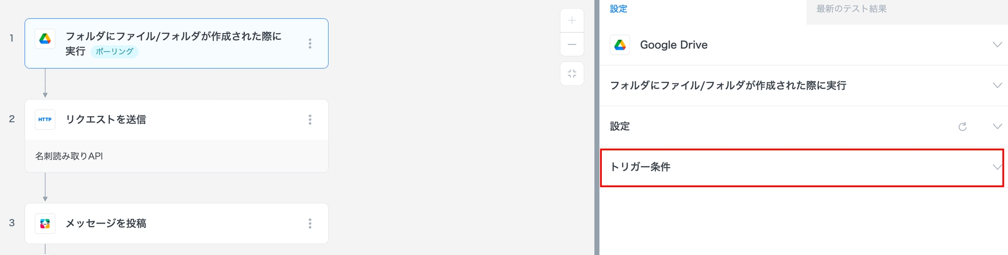 Google Drive トリガーへの条件付与