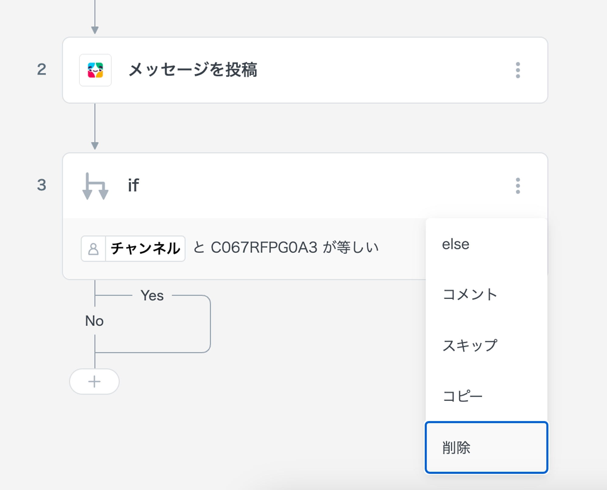 ifのステップは今回は利用しないため削除します。