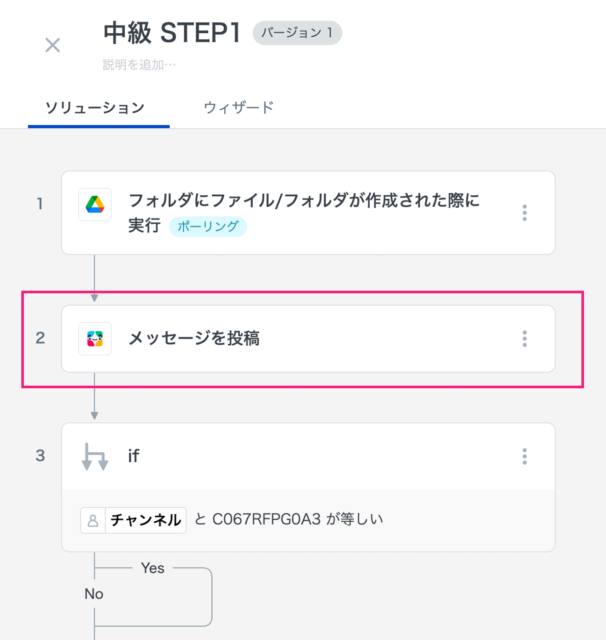 いずれもSlackにはメッセージが投稿されず、ソリューションが失敗になっているはずです。