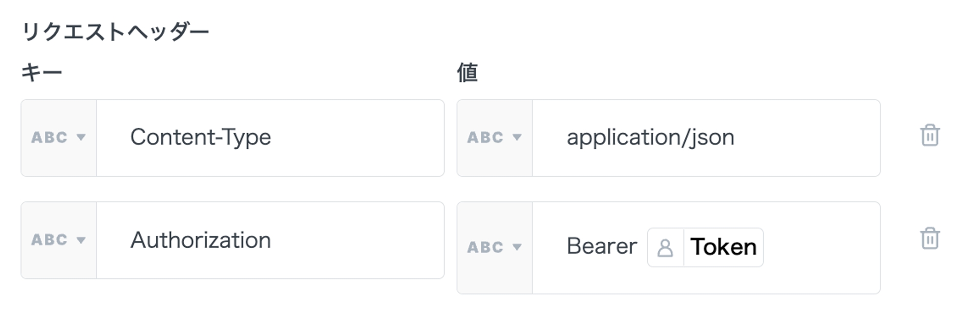 Bearer {Token} ※Bearerと{Token}の間には半角スペースを入れてください