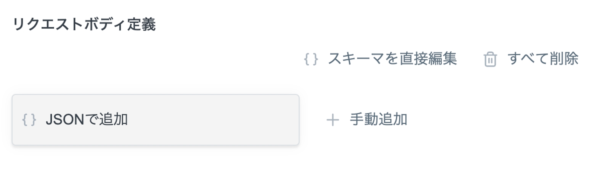 リクエストボディ定義は、「JSONで追加」を選択します。