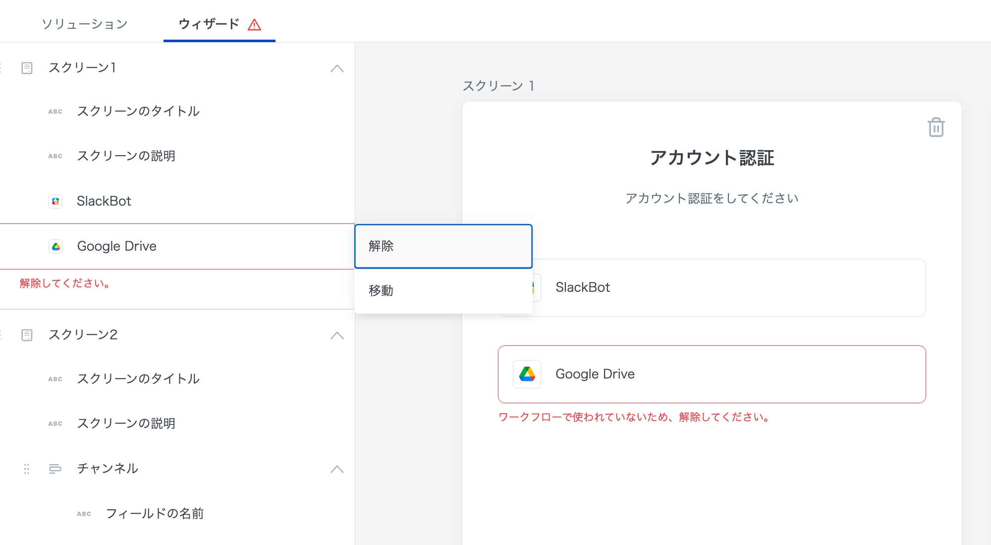 2-3. ウィザードからGoogle Driveを解除する