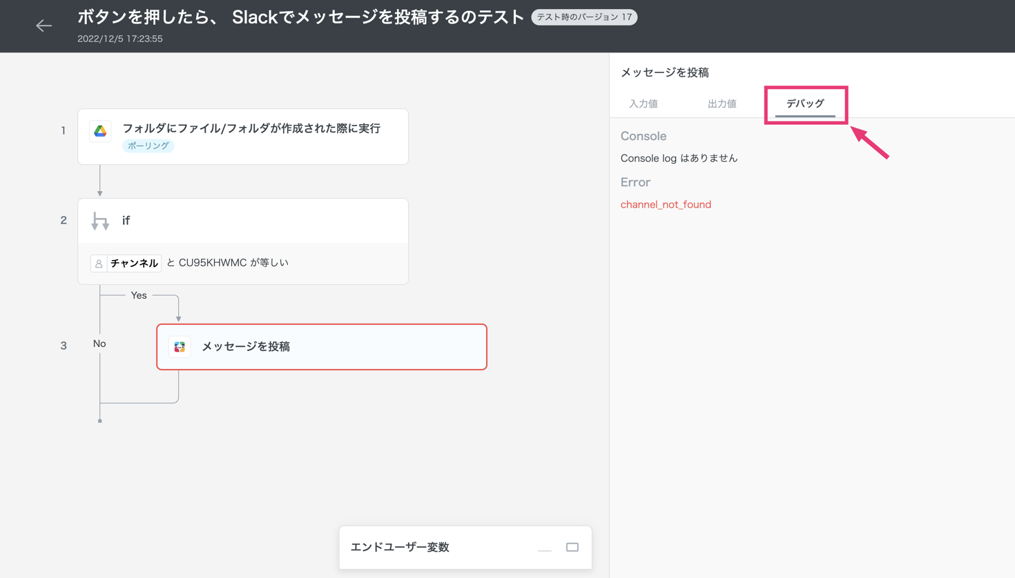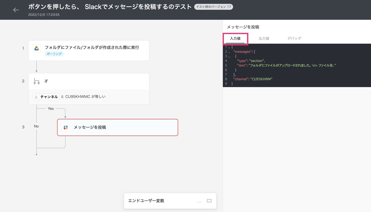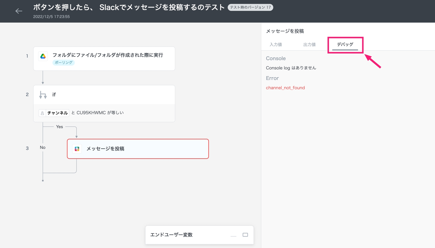 トリガーやアクションで取得した変数を活用する、デバッグの方法について