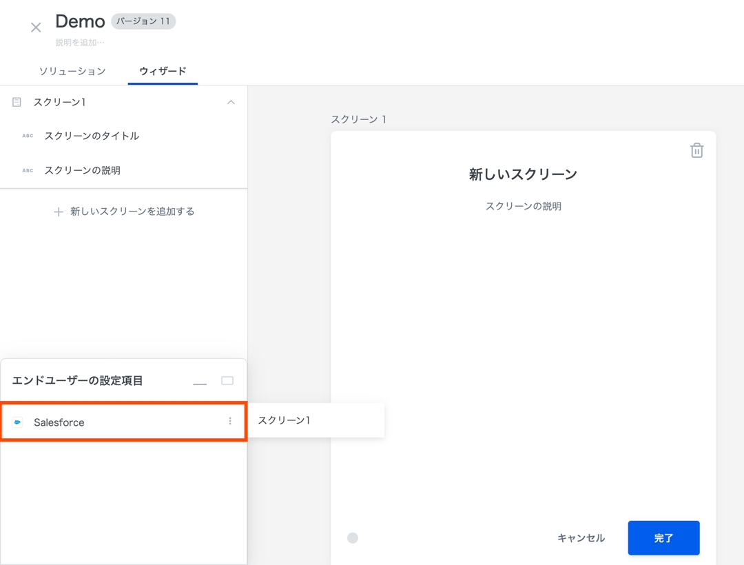 スクリーンは自由に追加と削除を行うことができます。 エンドユーザーに設定してもらう項目が増えた場合などは、スクリーンを適宜増やすことで入力のしやすさを向上させることができます。