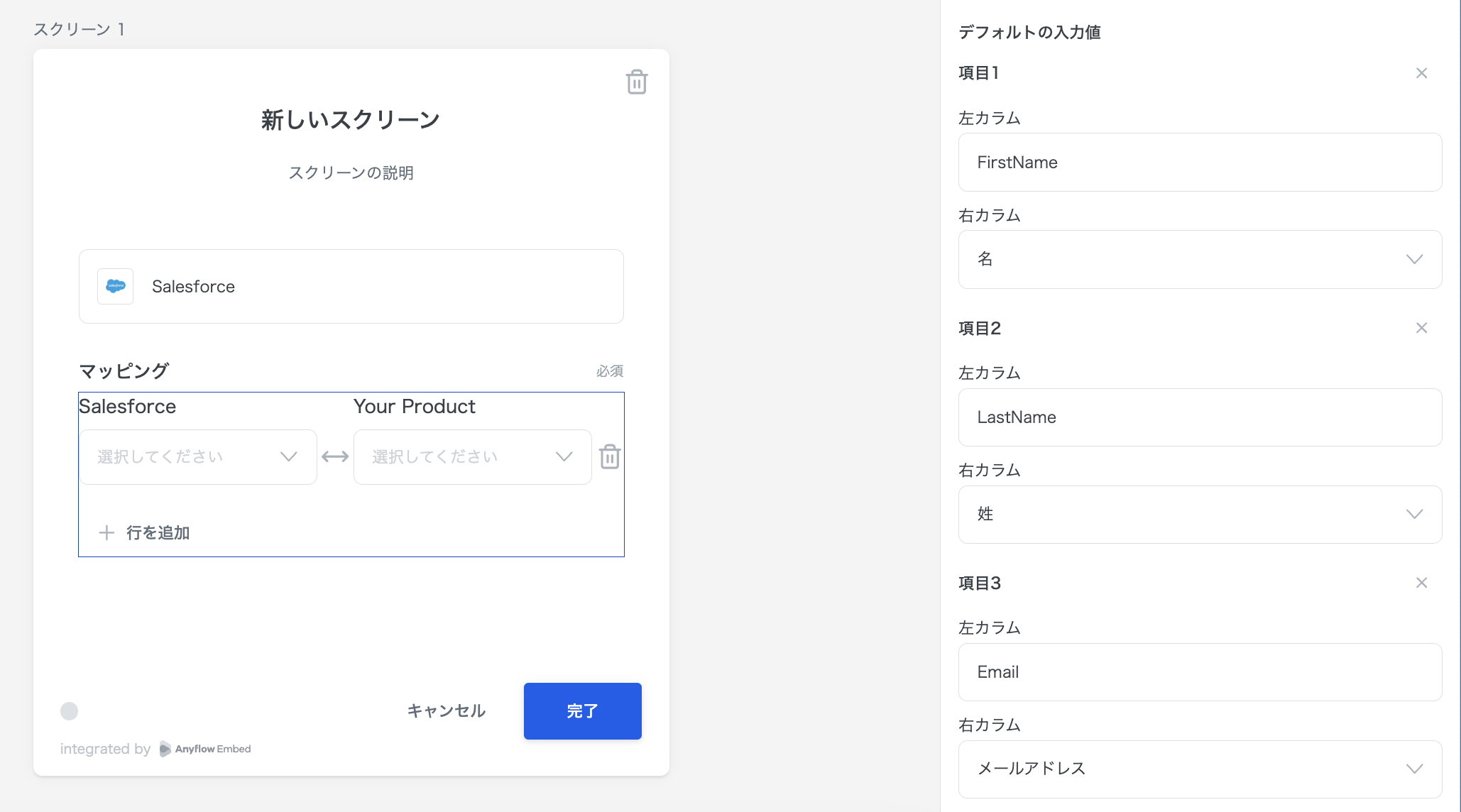 異なるアプリでデータのマッピングを行うためのウィジェットです。「基本的な入力ウィジェット」の組み合わせとしてデフォルト値を指定できます。