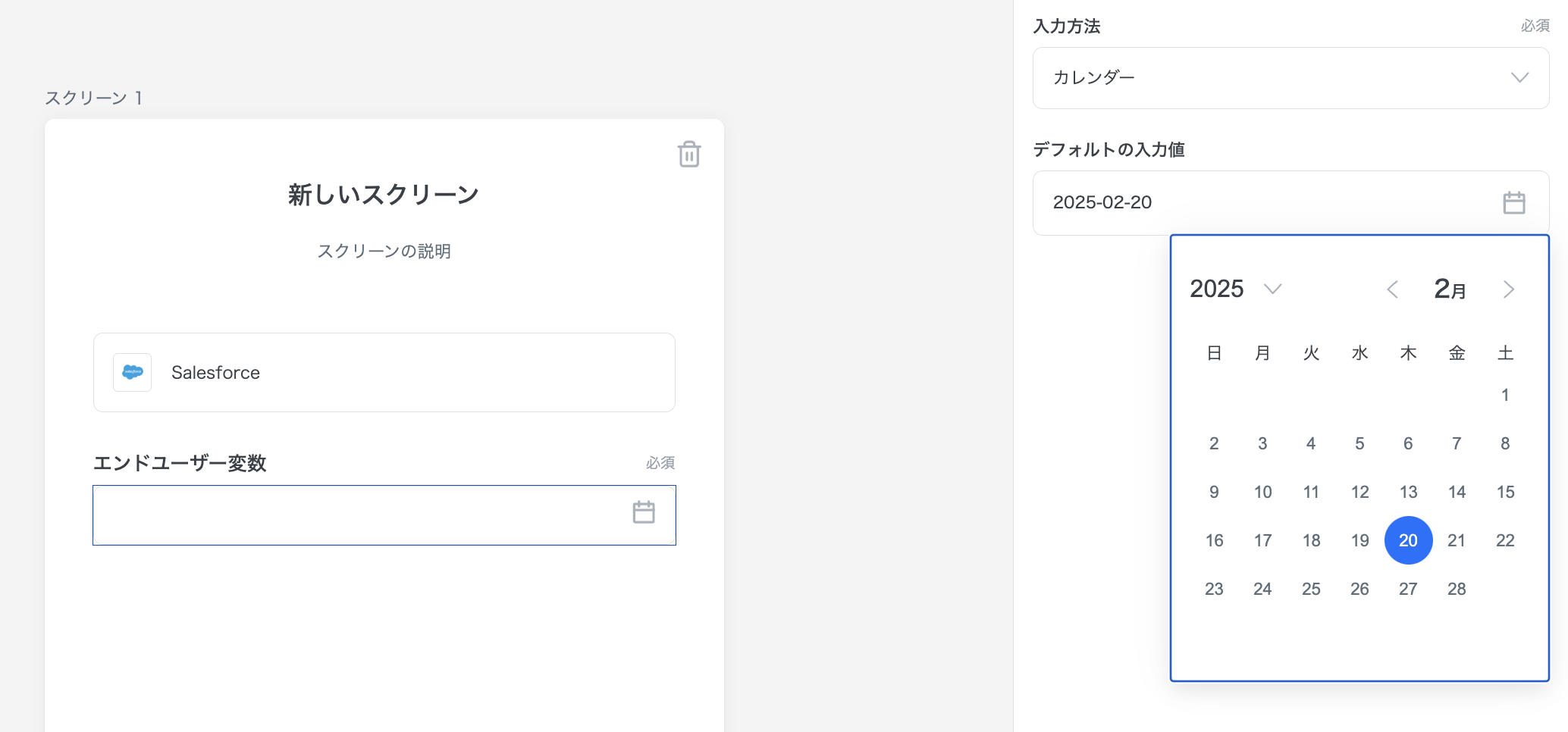 カレンダーの中から日付の入力をするためのウィジェットです。任意の日付をデフォルトにできます。