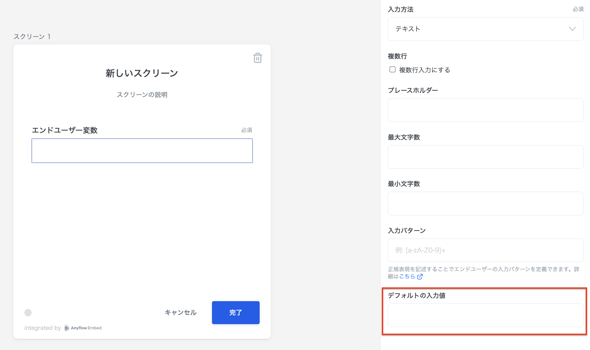 ウィジェットにデフォルト値を指定しておくと、エンドユーザーの入力が楽になる場合があります。