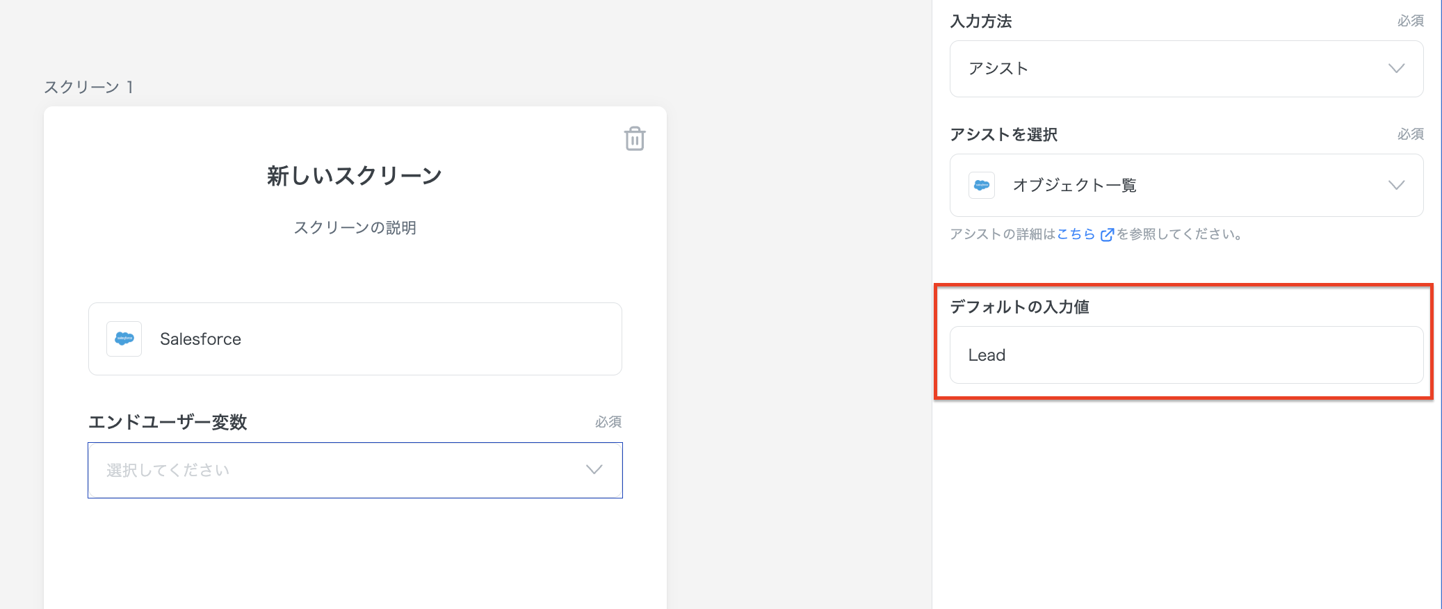 アシストで返却される値がわかっている場合は、1つをデフォルトで選択状態にできます。