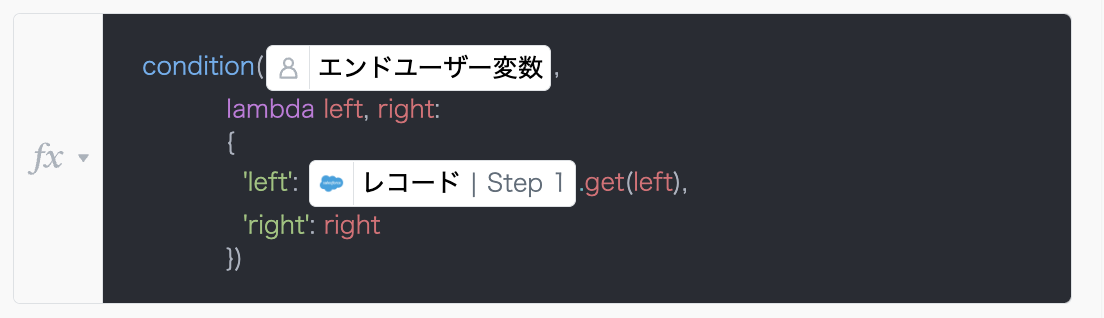 condition関数の第二引数には、エンドユーザー変数の値を受け取って判定を行うためのlambda関数(無名関数)を入力します。