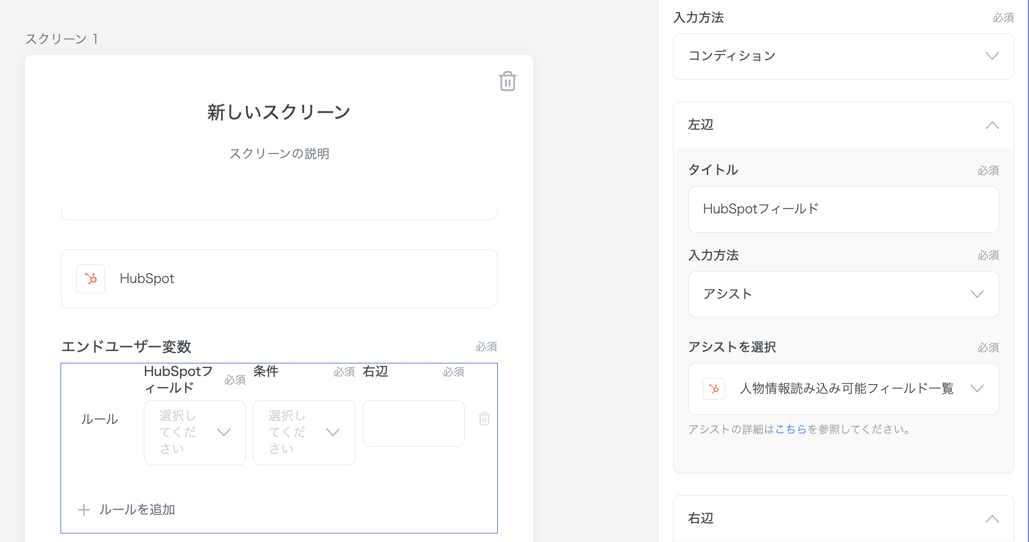 左辺はHubSpotの「人物情報読み込み可能フィールド一覧」アシストとします。