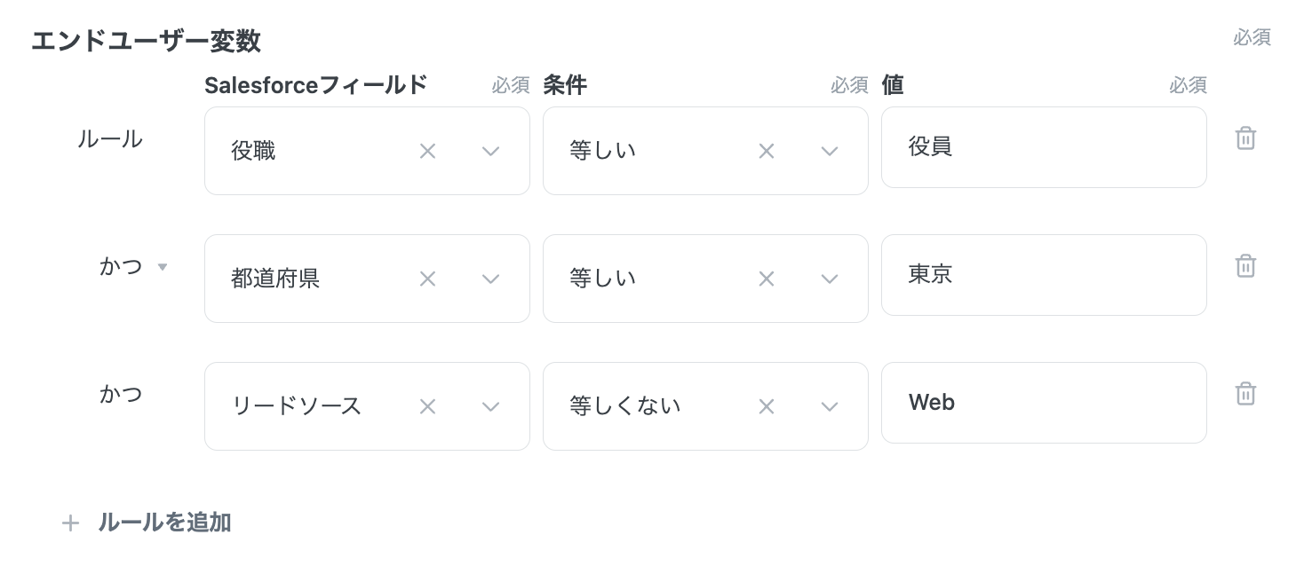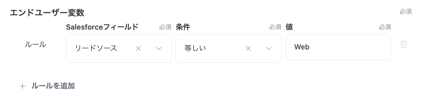 これにより、左辺にはエンドユーザーが「リードオブジェクトの任意のフィールド」を指定できるようになり、
